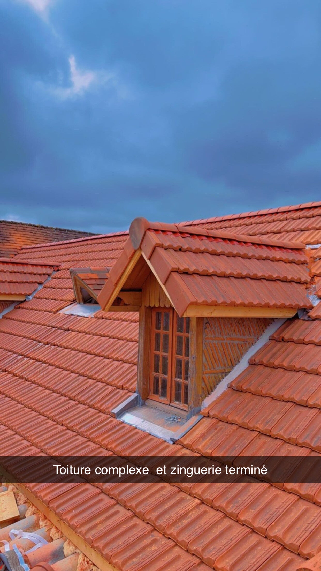 Étanchéité des points singuliers : entourages de cheminées/murs, noues en zinc, solins mortier/métal, abergements (Velux). Correction des pentes et rejets d’eau.